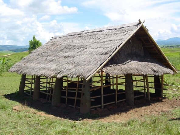 Buffalo hut with bomb shells